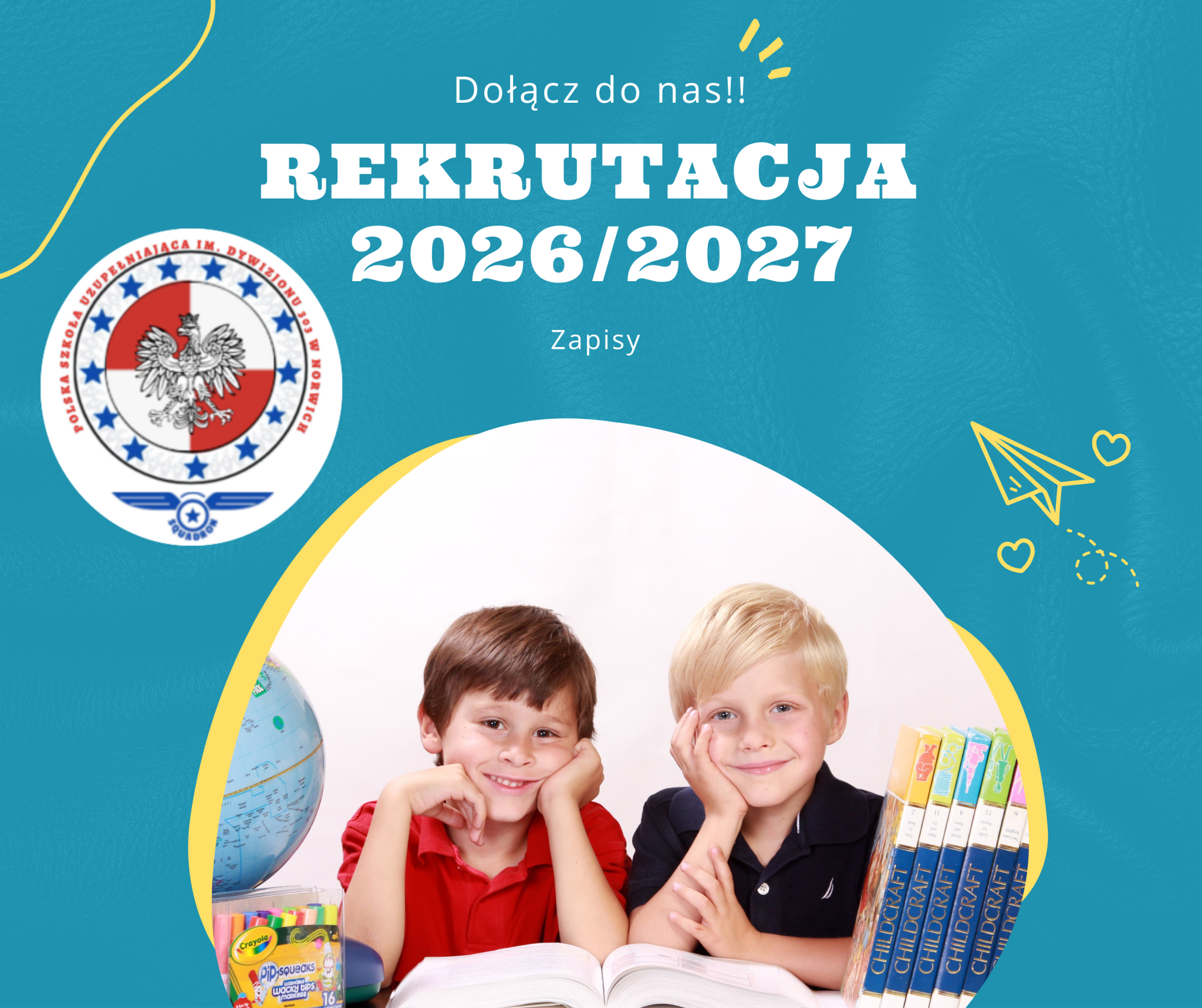 Wszystkich zainteresowanych zapisaniem dzieci do szkoły, prosimy o przesłanie wypełnionego “Formularza rejestracyjnego na rok szkolny 2026/2027 oraz wniosku na legitymację szkolną na adres mailowy polskaszkoladywizjon303norwich@gmail.com , a także zapoznanie się z Regulaminem Szkoły dostępnym na naszej stronie internetowej. Prosimy także o przesłanie mailem kopii dokumentów jak poniżej